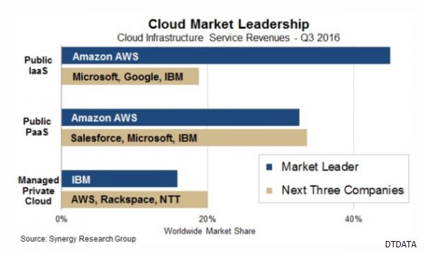 近日,市场研究公司Synergy Research Group的季度数据显示,亚马逊AWS云服务占全球IaaS公开市场45%的份额,高于微软、谷歌和IBM的份额总和。