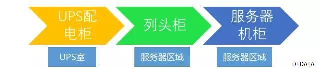 如图1 所示,机房内末端配电的范围应该从UPS 的配电柜引出至机柜内的PDU 止,这一段上的电流在800A 以下,主要供电对象为IT 设备,A 级数据中心一般采用A、B 双路系统进行供电。