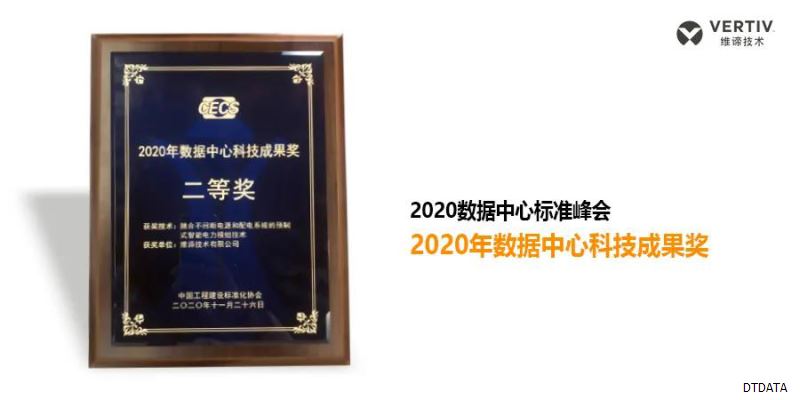 基于云时代供配电系统建设新理念,维谛技术(Vertiv)以模组化、预制化和智能化为设计理念,创新研发出“融合不间断电源和配电系统的预制式智能电力模组技术”。经过诸多环节的严格审查,成功荣获“2020年度数据中心科技成果奖--二等奖”。
